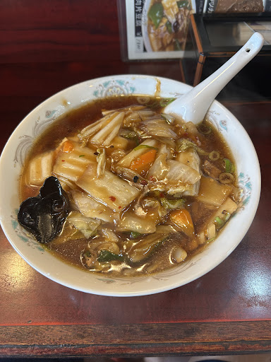 写真を見ての通り、熱々、野菜たっぷりの餡かけが、醤油ベースのスープに乗っている。麺は細麺の中華そば風。 餡かけの味付けは濃いめ、スープと絡めてさせるとベスト。筍や白菜がシャキッとしていて、しっかりと噛み締めるため、満腹中枢を刺激する。 麺とスープと餡かけが絶妙に絡み合い、うまい!長崎ちゃんぽんリンガーハットも野菜が多いが、ここは野菜が大きめに切ってあり存在感、より食べ応えを感じる。大きい野菜カットのため、餡の味を濃くしているのだろう。 しょっぱいのではなく、しっかり出汁が聞いた餡かけのため、丼で米との相性も良さそう。