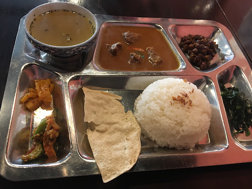 ■初回訪問。 日曜日と月曜日のみネパールの定食ダルバートが食べられるとのこと。 ランチは1310円でした。ディナーは1700円くらいです。 カレーを1種類選択できるのでマトンにしました。ドリンクはラッシーをチョイス。