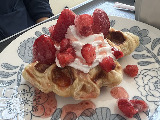 1.コスパ抜群で贅沢なクロッフル クロッフルのラインナップは、 ・苺づくし ・チョコバナナ ・ベリー ・あんバター ・ミックス など5種類 通常サイズは¥400、ハーフサイズだとなんと¥200!! +¥100でアイスのトッピングが可能 この値段でこんなにもりもりでいいんですか!?という贅沢さ イートインでもテイクアウトでもOKなのでシーンに合わせた食べ方が出来てオススメです✨ (ちなみにテイクアウトはSDGsを考慮したエコなものになってます)