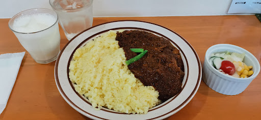 手作り喫茶店カレーの最上級版。 スパイス感はほとんどない。そもそもほとんど香りがない。 口に運んだ瞬間は優しい味。ただし物理的に重くてしっかりしている。そして食べ続けるうちに予想外に攻撃的なカレーなことに気付く。たまねぎで激甘だからだ。 ルーには溶けたたまねぎがたっぷり。とにかく甘くて、水分が少なくて、どろっとした、たまねぎジャムのようなルーを日本米のサフランライスで食べるカレー。 ミニサラダ付き。千切りキャベツとコーンとプチトマトにフレンチドレッシング。まさに喫茶店セット。