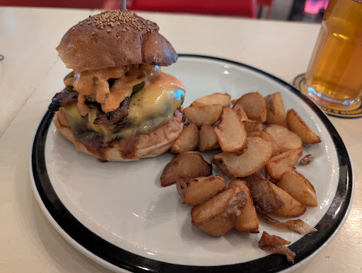 Read moreIt’s my first time eating at this resto. I tried their E-burger 🍔 and it was big and delicious. The potato chips looks unappetizing to me but they are actually good. The bun is buttery and sweet. It reminds me of shake shack buns 😋 You can choose how your patty to be done medium rare, medium or well done.. The restaurant interior is simple, cool and homey. I like it. They have many interesting burger flavors, they have milk shakes and rice menu too. I want to try them next time. However their burgers are pricy