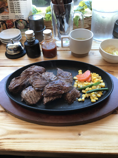 あと自分はステーキを食べたあとに鉄板で香ばしく焼けた付け合わせの野菜を絡めて食べるのが好きなんですけど、 そんな温度の低い鉄板に載ってる野菜が焼けるはずもなく、ただの茹で野菜で、これもまたしょんぼりしました。