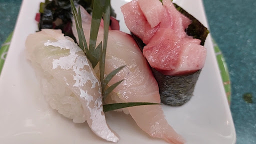 Read more価格は非常に安く、ネタは新鮮で店員の対応/サービスも気持ち良い店でした。 平日の6時半頃に伺いました。テーブルは半分ほど埋まっている程度でかなり空いていました。入り口付近は特に店内は静かすぎて入店時はこの店大丈夫か?と少し不安になりました。 オーダーは紙に記載して依頼する仕組み。回転レーンにはメニューやジュースなどのみ流れていてオーダーしてから握ってくれます。メニュー数も回転寿司店としては多くない印象。 幾らかのネタは普通に美味しいと思いましたが、普通は寿司ネタとして使わないであろうおそらく切れ端の切り身や筋の多い部位などを使った寿司も出てきました。また、調理の仕方なのか部位なのかわかりませんでしたが、これは本当にタイトル通りの魚か?と思う物もありました。初めて利用したため、試行回数は十分でなく時々上記の様な物が出るのか毎回なのかはわかりませんが、この辺りで価格を抑えているのではないかと思いました。 総評として、低価格の店舗と比べればネタは違いますしコスパとしては悪くないです。突発的に候補を探す様な時なら候補になるとおもいます。ですが、旨い物を食べたいなら別に行...