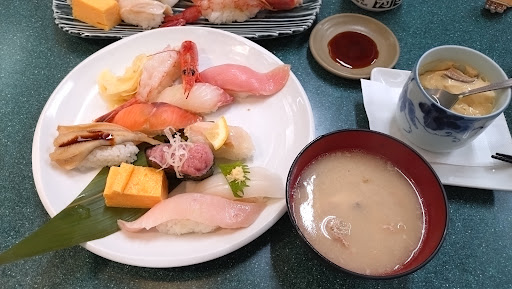 Read more【行くなら割引券をホームページでゲットしたい】 2024.1月平日13時45分訪問 先客2組、テーブル2卓空き、カウンター全空き。 1会計1000円以上で200円割引はお得です。 ランチタイムのおまかせ握りが800円で食べられる。お味噌汁2種類が飲み放題。この日は赤だし(豆腐)と海苔汁(なめこ)。
