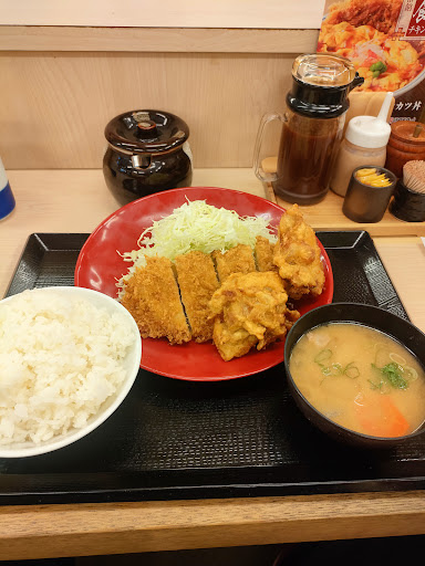 Read more今回は、国道16号線沿いにある「かつや相模原橋本店」に夕飯を食べに行きました!皆様が知っての通りチェーン店のお店で安定した味のトンカツや丼物が食べられるお店ですよね!お店も割と遅くまで開いているので残業した時や年末年始なんかに良く重宝しますね!そんなかつやに到着したのが18時過ぎで店内は、割と席の空きが目立ちます!正直にコレからの時間が夕飯時のゴールデンタイムなので逆に席が空いていて助かります!テーブル席が満席状態なのでカウンター席の端に腰をかければ、、、案の定夕飯を求めて次から次と新たなお客さんが来店してきます!メニューを開いて唐揚げとトンカツが同時に楽しめるロースカツから揚げ定食(880円税込)を元気な店員さんに注文してお茶で喉を潤します!混み合う店内の中待つ事10分程度でロースカツから揚げ定食が運ばれて来ました!定食の構成は、ミニロースカツ、から揚げ2個、キャベツ、豚汁、ご飯の構成で食べ応えは、シッカリとありそうですね!直ぐに出来たてのから揚げを口に入れればニンニクと醤油の効いたタレが飯に良く合うから揚げで満足と言える内容!気を良くしてトンカツにソースをかけて飯と食べれば、、、あれ?かつやのソースってこんなに塩っぱかったかな?と思える塩っぱさ!最近松のやで食べる事が多かったので舌が慣れてないのかな?と思いながらもう一切れ!やはり塩っぱいです!ソースの旨味と言うより直球で塩辛さが舌に来る!カツ単体で食べるとキツイですが、飯、キャベツと合わせると少し塩っ気が和らぐのでロースカツは、飯とキャベツで食べてから豚汁へ!豚汁は野菜の旨味と肉のコクが主張する豚汁で安定して美味いですね!最後に無量の漬物で舌直しをして完食!松のやで食べていたせいか飯の量が頼り無く感じますね!出来れば飯の食べ放題ならば安定してかつやに来るのになぁと思いながら会計です!それにしてもソースってあんなに塩辛かったかな?松のやのソースに慣れすぎたのかな?謎ですね!取り敢えずは、安定、安心してトンカツとから揚げが食べれた事に満足しましょう!皆様も国道16号線沿いのかつやで食べてみて下さいね〜!お弁当も充実していますのでお試し下さい!それでは、美味い!から揚げに心から感謝を込...