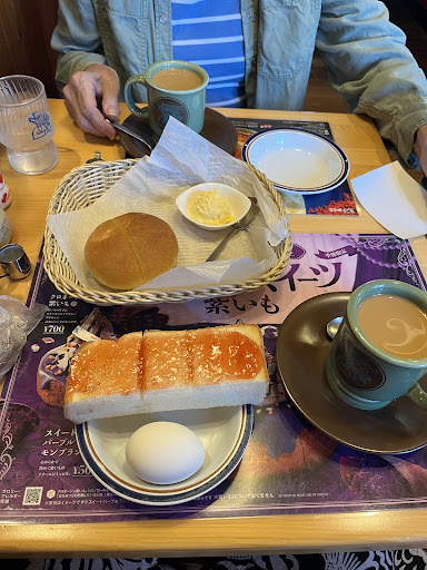 We stayed in Sagamihara for 2 weeks visiting family and came here for breakfast almost everyday. The building is like a cosy cottage with wooden wall panels and cool art. All the staff are friendly and helpful. We had the morning service of coffee, egg and toast for 500 yen per person - great...