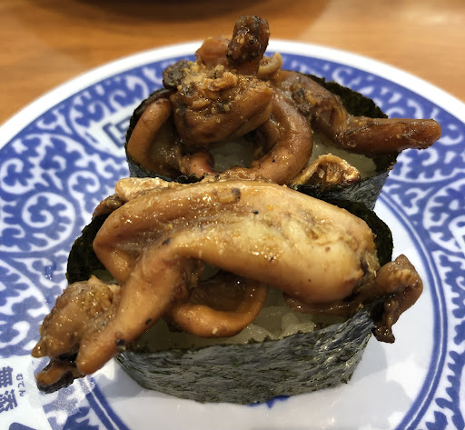 正月休に訪店。あ〜仕事の疲れが吹き飛ぶかのように美味しかった❗️嬉しいことにポン当たり!今回はうな丼を食べる気満々でところがメニューに無い!はて…どうしようか。ん〜ならば本日のお勧めと思い、燻製合鴨ロース、熟成大トロ一貫、うな丼にぎり等を食べた。正月には美味しいものを景気よく食べたい。大トロ一貫がシンプルに小さめで出てきたが美味しい➖‼️ こりゃはまってしまった、追加で2つ頼んだ、3つ食べたところでようやく気が済む。笑 うな丼にぎりも1つ目やっぱり美味しい。ん〜もう一つ頼もう…もう一つ…全部で3個も食べてしまった! 合鴨ロースは焦げの匂いが少し強く、鴨が薄過ぎ…なんだ、もっと噛みごたえがあるかと思ったのに…が感想。 デザートの♪わらび餅♪は最後に最高!久しぶりにくら寿司で美味しいデザートが食べることができた。ん〜伸びる延びる…わらび餅が楽しんで食べられる。正月より伸びる食べ物が縁起良く思えて、粉茶と合い、日本食満喫した歓びに溢れた。粉茶は個人的にスプーン3杯、スプーンで混ぜながら飲むといつも香り良く味わえます。 大トロ一貫の後に間違って中トロを頼んでしまったところ、大トロ一貫へ気持ち良く変更の対応をしてくださいました、大トロ→中トロを食べるのは難しいでしょう…この日は近場で美味しいものを…そしてくら寿司のお正月の雰囲気を味わいたい為にやってきたから、とても嬉しかったです! (22.01)