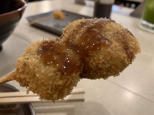 All fried foods here. You want to try shrimp fried, quail eggs, cheese, asparagus deep friend in batter, etc, this is the place to go. They even have a deep fried kitkat specialty. It’s a good joint for having a drink with friends. It looks like an izakaya but is quite family friendly. They have happy hour games that can help you win free drinks. This branch is quite local so a little Japanese...
