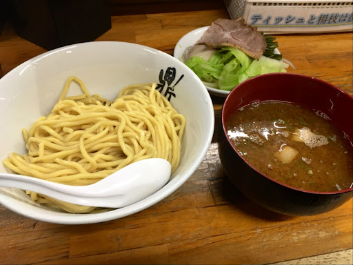 ■初回訪問 相模大野駅から徒歩3分。 通りから少し奥まったところにあります。深夜営業あり。 店内入ってすぐのらところに券売機があります。券売機の上の壁にはラーメンの写真が沢山貼ってあり、イメージを掴めます。 今回はつけ麺(950円)をチョイス。