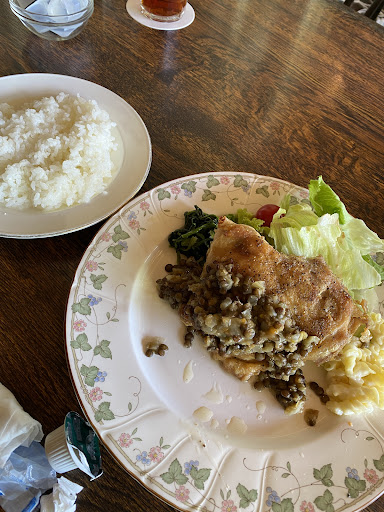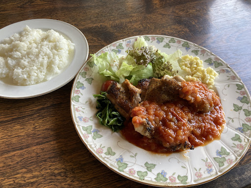 Read moreとても人気ですね。ゴールデンウィーク中日の平日、12時少し前に車で着きましたが駐車場は残1台のみ!ギリギリセーフ。 店内にお邪魔すると早口で満席ですっと。待ちますか、今2番目の案内と言われ、ぜひ待ちたいと伝えます。わんこ連れだったのでテラス縛りです。 外に出て、わんこを車から出して歩かせていると5分ほどで呼ばれました。ちょうど私が店内でやり取りしていた時に会計していた方がいたので、その席が空いたのでしょう。 店内はログハウスで木の優しい温もりがあります。 フレンチを主にしたメニュー。夫はハンバーグデミグラスソース、私はチキンのコンフィバルサミコソースを。ドリンク付きで各1600円です。 わんこはマットを敷けば椅子もOKらしく乗せましたが、うちの子には幅が小さく落ちてしまったので床に居させました。 お食事は15分ほどで着。コンフィが先に来て、ハンバーグはお時間かかりますと。他の方も記載ありましたが、多忙でタイミング合わないと料理の提供は他の席と前後してしまうそうです。 コンフィバルサミコソースはレンズ豆たっぷり。意外でした。他のメニューと間違われたかもです笑 夫のハンバーグは柔らかくお味も優しめだったとか。 後客も後を絶たず来店されてました。終始フロアスタッフさんは駆け足で、横を通る度床が揺れて、わんこご怖がりました🤣 忙しなく食事を終え、サッとお会計...