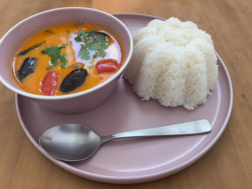 レッドカレー大盛りは、一口目はココナッツの香りと甘味、酸味が広がるけど後から追いかけてくる辛味が癖になる。 牛肉やナス、パプリカ等具材も豊富でスープカレーのような感じ。 すごく美味い。 大盛りのライスもパラパラのカレーに合うタイ米。 しっかりと大盛り、お腹いっぱい。