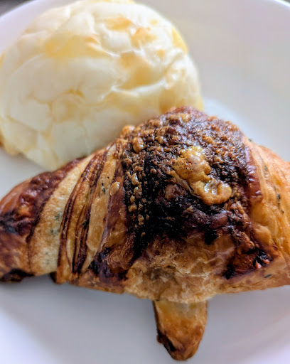 クリームチーズバジルクロワッサン 外はパリパリと、中はもっちりのクロワッサンです。 焦げたバジルの香りと苦みが、クリームチーズと絶妙にマッチして、美味しいです。😋