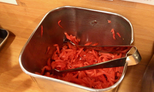かと思ったらその直後に別のお客さんが「替え玉、半玉お願いします」と言って、食券を買わなければと席を立とうとしたら、「あいよ~、50円、直接でいいよ。」と言い始めて、その瞬間注文した本人を含めたカウンターにいたお客さん全員が「ふぁっ!?」と驚いたと思います(笑)。おじちゃんいわく、「最初の一杯はせめて食券買ってよね。食べている内に今日は美味しいな、もっと食べたいなって思ってくれたらいいんだけどさ。」と言っていましたが、いささか高難易度です。