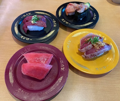 åœåºã¯ïŒç¿120åãã販売ããŠãããé»ç¿ã»èµ€ç¿ã»é»ç¿ã»çœç¿ã®é ã«å€æ®µãé«ããªããŸãã å®çªã®å¯¿åžãã¿ããµã€ãã¡ãã¥ãŒãæããŠãããã¿ããããã«ããæ³šæããŸããæééå®ã¡ãã¥ãŒãå¹³æ¥éå®ã¡ãã¥ãŒãããããŸãã â»åœåºã§ã¯ãã¿ããããã«ã§æ³šæãã寿åžã»ãµã€ãã¡ãã¥ãŒã¯å転ããã¬ãŒã³ã®äžéšã«ãããã«ãã³ã³ãã¢ã§å®¢åžã«æäŸããã·ã¹ãã ãå°å ¥ããŠããŸãã