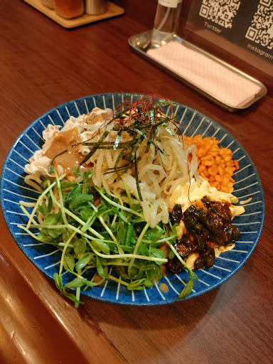 夏の醍醐味の一つと言えば!冷やし中華ですよね〜!そんな訳で今年初の冷やし中華を食べにらーめんたきびさんに行って来ました!上溝駅から徒歩で20分の場所にある味噌らーめん専門のラーメン屋さんで、割と新しいラーメン屋さんですね!お店に到着したのが19時過ぎで先客は、1名程でしたので券売機のメニューをユックリと確認してから、胡麻みそ冷し中華大盛り(900円+150円)を選択しカウンター席に着席してから店主に注文します!ですが、メニューを観ていて青唐辛子味噌漬けが気になり初めてしまい、迷惑承知で店主にメニュー変更をお願いします!変更したのが同じ冷やし中華の胡麻味噌冷し中華青唐辛子のせ(950円)に変更!店主は、変更にあたり嫌な顔一つもせずに笑顔で対応してくれる人柄で気持ちの良い人物です!水を飲みながら待つ事8分程で、今年初の冷やし中華の胡麻みそ冷し中華青唐辛子のせ大盛りが到着です!彩り豊かな冷やし中華で微かに味噌の香り漂う冷やし中華です!具材は、豚シャブと天かすと卵の白身と黄身を混ぜてタルタルソース風に仕上げたゆで卵と野菜に豆苗とモヤシ、最後に青唐辛子味噌漬けが彩り良く配置されています!私は、冷やし中華を食べる時は、混ぜそば同様に全てを混ぜるタイプなので、今回も全てを混ぜて食します!良く混ざった所でモチモチ中太麺を豪快に啜ります!味噌の味と卵のタルタルソースが合わさった味は、濃厚で汗をかいた体には、最高のご馳走です!麺もモチモチしていて味噌の味付けに良く合い喉越しも気持ち良いですね!そして気になる青唐辛子味噌漬けは、シャキシャキした食感残す輪切りの青唐辛子で嫌な辛さでは、なく爽やかな辛味残す味噌漬けで食欲を更に増進させてくれる優れた薬味です!食欲が増進した所で、お次は、豚シャブ!脂感を少し残す豚シャブで味噌の味付けとの相性は、良く食べ応えも抜群です!アレや、コレやと楽しみながら麺を啜り、気付けば一口程度!最後のささやかな幸せを味わい食せば今年初の冷やし中華は、完食です!実に内容ある冷やし中華で、とても美味しい冷やし中華で大満足な夕飯でした!そして特筆すべきは、中太麺の美味さと青唐辛子の味噌漬け!特に青唐辛子の歯応えと爽やかな辛さは、素晴らしく、味噌味の麺を更に美味しくしてくれる優れモノ!麺のモチモチ感と喉越しも良く病みつき度合いの高い麺ですね!ただ安月給の自分としては、お値段がやや高く感じる部分がありますが、昨今の情勢では、仕方なしですよね!たまにの贅沢で利用して味噌らーめんに生玉子を付けて食してみたいですね!ちなみに、コチラの味噌らーめんは、味が濃い目なので味をマイルドにする為に、生玉子を漬けて食すらしいですよ!皆様も今年初の冷やし中華をらーめんたきびで食べに来ませんか?お勧めは、やはり麺を美味くする青唐辛子の味噌漬けです!食べればクセになっちゃいますよ!夏の風物詩、冷やし中華!暑い夏にピッタリの酸味と味噌の旨み溢れる胡麻みそ冷し中華!胡麻と良く合う豚シャブと喉越し豊かな中太麺!食べれば、食べるだけ、美味しく食べれる濃厚な胡麻みそダレ!この夏イチオシの胡麻みそ冷し中華青唐辛子のせを皆様も御賞味下さいね!それでは、真面目で謙虚な店主と爽やかな涼風の様な胡麻みそ冷し中華青唐辛子のせに心から感謝を込...