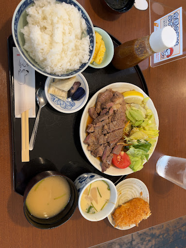 にんにくと醤油の良い香り。 この後、人と会う時は遠慮した方が良いくらいのニンニク感かな。 ご飯は普通の店の大盛りくらい。 アサリの味噌汁に漬物。 茶碗蒸しは夏だから冷やしてるのかな? たけのこや鶏肉、椎茸、銀杏など具材もしっかりとした茶碗蒸し。 クリームコロッケも付いてきてこの値段。 なによりステーキがっつり。