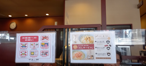 やよい軒の利用の仕方は ①最初に食券購入 ②好きな空いてる席に座ります ③お水やお茶は自分で汲みま席へ ④お店の人に食券の半券を切ってもらい厨房にオーダーを入れてもらいましょう ⑤その時店員さんが無料の漬物を席に持ってきてくれますが お店によって全員分漬物は無いことがあり混雑時は瓶が足らないので持って来ない事があります ⑥定食で白米の人はご飯のお代わりが自由に出来ます ⑦白米のお代わりは自分でご飯盛ロボットでします お椀を乗せたら量のボタンを選んで押します ⑧だしスープも自由にかけて良いす おかずが無くなった人等は、だしスープ茶漬にします ⑨食事が終えたら食器はそのまま置きっぱなしでお店を退店してください