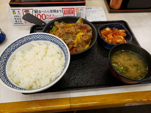 注文したのは、牛プルコギ定食767円。 たぶん新メニューです。 人生初めてプルコギなる物を見て食べたので、なんとも言えないのですが、緑・赤・黄色のピーマンが入ってました。 韓国料理なので辛いものと思っていたのですが、甘めのタレでした。 可でも不可でもない普通の美味しさです。 小皿のキムチは、ちょうど良い辛味です。 吉野家さんは、なに食べても無難な味です。