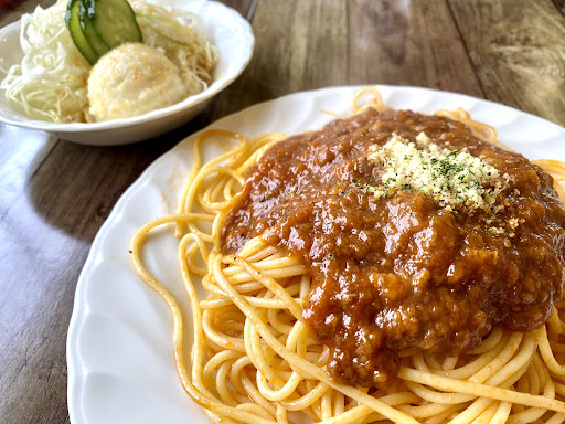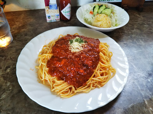 平日の11時頃お伺いしました。 先客はいませんでしたが、お昼に近づくにつれどんどんお客さんも入ってました。 店名がパスタっていうのが、わかりやすくてインパクトがあって面白いです。店舗は喫茶店といった雰囲気です。 料理は一番人気のミートを注文しました。200円プラスで大盛りにできるのですが、写真のとおり通常のサイズでも十分ボリューム満点です。 味は甘味のあるミートソース。確かに普段あまり味わうことのないミートソースです。甘ったるくもなく、スパイシーな部分もあり、最後まで飽きることなく美味しく食べれました◎スパゲッティにはサラダも付いてますよ。 ちょっと違ったミートスパゲッティを食べたい方は是非ご賞味ください。次は他のスパゲッティも食べてみたいで...