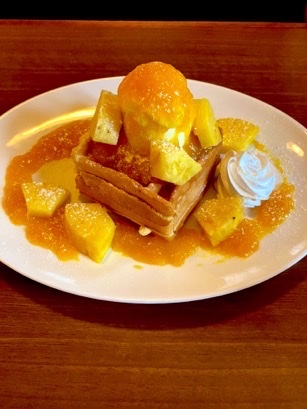 Read moreパイナップルとマンゴーのワッフル、チョコレートウィンナー珈琲ICE、チーズケーキ、インド風ミルクティーICEをいただきました。 焼きたてワッフルは言わずもがな、マンゴーピューレが粗濾しで果肉感が感じられ美味しいです。 チョコレートウィンナー珈琲はHOTにしないとクリームが溶けにくいです。私の選択ミスでした。 他所で飲むとデフォルトで甘いところが多いですが、ここは無糖なのでインド風ミルクティーのスパイスがより感じられます。シロップは別に来るので甘党の方もご安心ください。チーズケーキはチーズしっかり目ですが、ストロベリーソースが甘すぎず口をさっぱりさせ、あっという間に無くなりました。ご馳走様でした₍₍...
