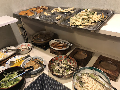 Read more最近コロナでなかなか来れずバイキングがやっているかわからなかったけど心配しながら訪問 入ってみると前のままで棚には料理が並んでいた とり皿が変わっていた、コロッケ、ナス天、竹輪天、こんにゃく大根煮、生野菜、マカロニサラダ、スパサラ、ナポリタン、焼きそば、焼きうどん、お好み焼き、漬物、ピラフ、玄米がゆ、おにぎり、稲荷寿し、白ご飯、カレー、サンドイッチ、食パン、スープ、などなど色々ありそれぞれの味付けも美味しいアイスコーヒ...
