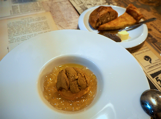 何を食べてもいちいち美味しい。 ウニとニンジンのムースとコンソメのジュレ。 鱧のベニエには、じゃがいものムースみたいなんと一緒に。 こんなん西条で食べれるの!?