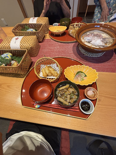 予約制と言う事で、予約して行きました。 釜飯3つ、白ご飯。鯛めし。宇和島の鯛めし。から選んで下さい。って事。鯛めし1800円にしました。お店の中もカウンターと個室もあり、個室での食事でした。正座とか足を伸ばしたりする事なく、テーブルの下が掘りごたつのようになっているので、楽に食事が出来て良かったです。 食事も良かったです。塩分控えめにしている自分には、少し鯛めしの味がしっかりつきすぎてるかなぁ。って、感じです。最後にデザートがあります。飲み物は、別料金になります。コーヒーと一緒に頂きました。チョコのケーキにいちじくがトッピングされていました。自分、情けない事に、いちじくが食べられなくて😅 そしたら、お店の方が変えますよ。って、優しく言って下さったんです。申し訳ないから、お断りしたのに、トッピング用のブドウを持って来てくれはったんです。感動でしたわぁ。 良いランチ時間が...