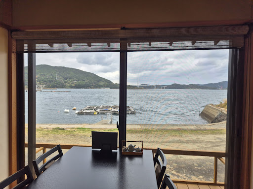 Read more15時ごろの利用のため、待ち時間もなく席につけました。海沿いから見える大島と大島の橋、日にあたりキラキラ光る海が絶景です。 丼フェアがあったため丼を注文。さほど待ち時間もなくすぐにいただけました。お味噌汁はアラで出汁を取っているようで出汁の旨味と魚から出た油でコクがあり絶品です。丼はご飯の上にお刺身と天ぷらがのっていました。海老天に有りがちな大量の衣はなく、薄付けで揚げられているためサクサクいただけました。お刺身がまた新鮮コリコリ。脂がのっているお刺身は舌で溶けるようなのに食間もある不思議な感覚。甘めの醤油がまた絶妙に合います。アクセントの胡麻がまた食感を面白くさせてくれます。お米とお刺身の間にツマを挟んでいるため、お米がベチャベチャすることなく、最後まで食感が良いまま楽しめます。おかみさんも上品な微笑みが素敵な...