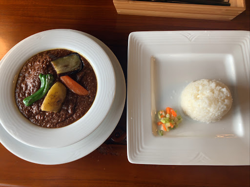 Read more前菜のサラダが凝っていて、大きな具材一つ一つがきちんと味付けされていました。 カレーはすごく時間をかけて作られているのを感じる深い味わいでした。 デザートのコラーゲンゼリーもさっぱりしつつちょうどいい甘さでした。 まるで違う世界に来た様な店内の雰囲...