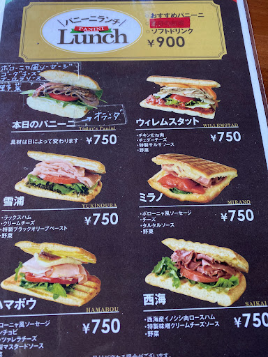 お店自体地下、一階、二階とあるようでした。感染対策バッチリでした。海の近くという事もあり夏が賑わうのかもしれません。★駐車場は郵便の並びにあります。5.6台ほど。 パニーニ普通です。ボリュームにかけるような気がします。ジビエ(イノシシ肉)パニーニにはレタス葉が少し。たっぷりと入った美味しいジビエに負ける。インパクトがない! 他のと同じ料金にする必要もないのでは?!と思ってしまいました。 せっかくのジビエのパニーニ。もう少しボリュームがあった方が食べ応えも...