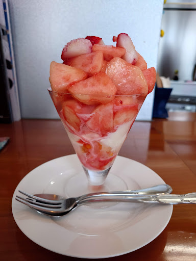 Read more季節のパフェセットをいただきました。 注文時に、苦手なフルーツがありますか?と聞かれました。 苦手なものを聞いてくれるのは親切だなーと。 フルーツパフェと言うより、ざく切りフルーツの盛り合わせのようなパフェで斬新でした。 フルーツの下のアイスはジェラートっぽいさっぱり目のアイス。 とても美味しかったです。