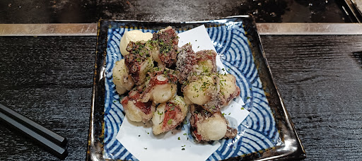 店に入ると右側に招き猫のお出迎え。目の前に小さい生簀があってまさに鮨を彷彿させる雰囲気。圧倒的な和のテイスト。けれども、座敷に上がるとテーブルに鉄板。なるほど、おもしろい。