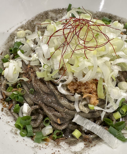 2025年1月 久しぶりに来店。すると期間限定メニューが。 トリュフ香るまぜそば。なんと。 浦和不動尊界隈でトリュフという単語にラーメン屋でお目にかかろうとは。早速券売機でポチりましたよ。 やって来た丼の傍には小皿の上にこれまた小ぶりなレンゲに入った黒いトリュフソースとカットされたライムが。まずはノーマルで食べてから味変を楽しむのですね。丼から漂う香りは、バターですね。ルックスはまぜそばですが、パスタを食べる気になります。 ひとしきりまぜそばを楽しんだ後はトリュフソースを投入してライムをひと絞り。確かに香りが変わります。まさにパスタ。いや、パスタより自由ですなラーメンという料理は!変化球も、また楽し。まさかBGMにビル•エバンスを聴きながらこんなまぜそばを味わえるとは。浦和、奥深し(笑)