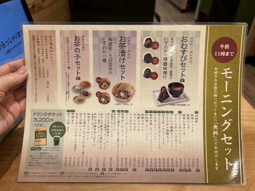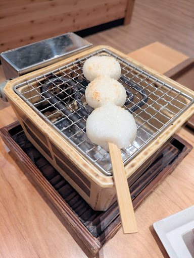 Read moreモーニングで利用しました。 店内に入った瞬間にお醤油の香ばしい香りに包み込まれます。 ドリンクの種類が和なものがメインなので新鮮で、どれを注文するか悩みました。 お抹茶、あずき茶なども気になりましたが甘いものが飲みたくて【きなこオーレ】を注文しました。 きな粉よりもミルク感強めできな粉の風味は薄かったです。また、素材の味を活かすためか甘さは控えめでした。 ただ、黒蜜が付いているので甘味は調節できますが黒蜜ミルクになります。 個人的にもう少しきな粉を入れて欲しいと思いました。 モーニングはおにぎりとお味噌汁が付きます。 種類は梅、昆布、高菜から選べます。 今回は梅にしました。おにぎりのてっぺんに梅肉が乗っているだけでなく中にも、下の方もしっかり入っていて最後まで梅を堪能できました。 やっぱり朝に食べるお米とお味噌汁いいですね。朝食はパンが多いので改めて和食の良さを再認識しました。ホッとします。 モーニングとは別に【だんご三昧】を注文しました。焼き方のレクチャーもしてくれるので安心して挑めます。 醤油、黒蜜きなこ、あんこの3種類。 醤油は砂糖もはいっていて甘めの醤油です。 磯辺焼きみたいな本当の醤油を想像して食べると甘くてビックリします。残りが黒蜜きなこ、あんこなので醤油はシンプルにしょっぱい味で食べたかったです。 熱々、モチモチで焼きたてで食べられるし、焼く体験が楽しいので700円の価値があると思います。 2人で行ったので仕方ないのですが届いたら狭いし、2人で1つでコンロを使うので焼くのに焼きずらかったです。 タイミングもあるとは思いますが、他の2人組の方は4人席でゆったり使っている人も目に付い...