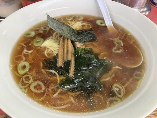 Read more定番の中華そば!これぞラーメン! ラーメン定食800円で、醤油ラーメン、ライス、餃子、お新香 しっかりめな醤油ラーメンが疲れた身体に染み渡る。シンプルな見た目だけどラーメンてこれでいいんだよ。って思えました。 チャーシューも味がしっかりしてて、少し硬めなのが◯。 餃子は具も詰まってて間違いない味と見た目。 15時くらい?に行ったけど続々とお客さんが入ってきて隠れた人気店なことが伺えました。 ラーメンも色々と種類があり、たぶんおすすめはラーメンにプラスしてネギライス250円 店主が淡々とネギを切ってたので間違いない。 雰囲気もカウンターのみの昔ながらな感じで、古さはあれど汚さはなく、キッチンも整頓されていました。 水はセルフ。部活でポカリ入ってるタイプのやつでキンキンに冷えてました。 ジャンプは最新号が置いてあり、呪...
