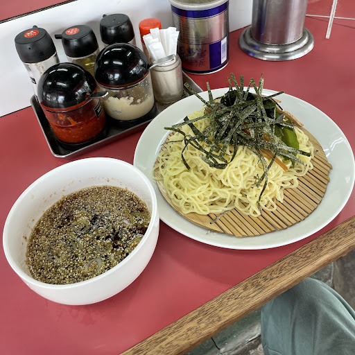 つけめんを食しました。 税込650円でした。 汁は冷たいものと温かいものを選ぶことができるので冷たいものを選びました。 麺にチャーシュー、メンマ、ワカメ、海苔などが盛られ、汁にネギと白胡麻がたっぷりと入れられています。 チャーシューは脂身が少なく噛み締めるほどに味わいがあり、メンマは甘辛い味つけがされていてワカメのコリコリとした食感も良いです。 汁は出汁醤油でさっぱりとしていて白胡麻が香ばしいです。 麺はたっぷりと盛られていて、細麺で軽い食感でツルツルとしています。 旨かったです。