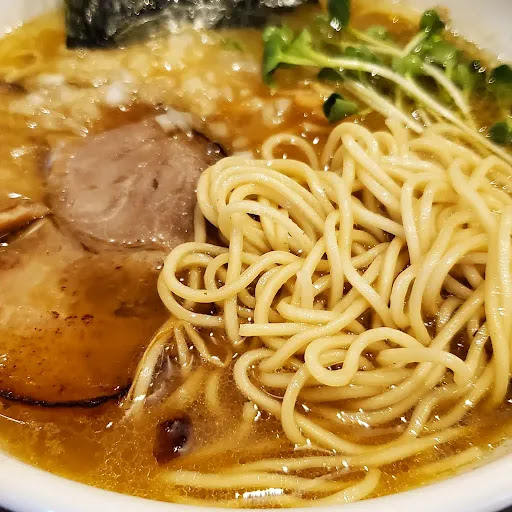 This is a soy sauce ramen. The soup is a combination of pork bones and chicken bones with dried sardines, and is very rich.The noodles are...