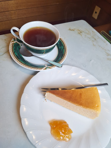 バスの待ち時間潰しにコーヒーを飲みに立ち寄りました。建物の外観は、レトロというか、ここを目指して行かないと、見落としてしまいそうな地味な印象。 内部も、まさに昔ながらの喫茶店。 そんなに期待はしてなかったのですが、皆さんの評価がそこそこ高いので、どんなもんかと思って恐る恐る入店。11時半と、まだお昼前ということもあり、他にお客さんはいらっしゃらない。 自家製チーズケーキとコーヒーのセット700円を注文。 コーヒーはサイホンで、注文に応じて淹れたてを出してくれるようです。 お味は、美味い! クセのない素直で香ばしい味わいです。 ケーキも素朴ですが、とても美味しくて、うーん、なかなかのコスパですね。 その後、他のお客様も入店され、なにかランチを注文されたようで、美味しそうな香りが店内で充満してきました。 次回は何かランチも食べてみたいな、と思わせるなかなか良...