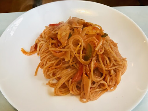 そんなウォッチングをしている間に出てきました、今日の私のランチのナポリタンが。