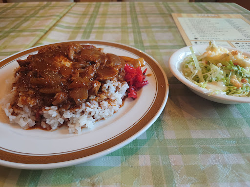 評判が良かったので訪問させて頂きました。 祝日の11時過ぎ、先客は常連っぽい年寄り2名。 評判のよいスパイスチキンカレー、コーヒーを注文。注文時、結構辛いと言われました。 辛いのさほど得意ではなく、食べてみるとホントに結構辛い。けどスパイスが効いてて、辛いのが苦手でもギリギリ美味しく頂ける範囲で美味しかったです。ポーチドエッグが辛さを抑えてくれたのも良かったかも。 アイスコーヒーも焙煎が効いていて美味しかったです。 店の雰囲気も物凄く良かったですか、常連っぽい客がひたすら煩い。1人はマスク着けてないし、、、聞きたくもない話が耳に入ってきて相当不快でした。 店内に注意書きがあるけど、店員さんも注意せず常連だからか、話に入っている始末。 個人店なのでしょうがないんでしょうが、ああいう常連が居座っているみたいだからもう次はないかな、、、料理美...
