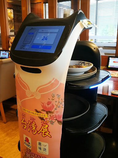 この店舗は駐車場も広く、店内も比較的ゆったりしている雰囲気です。すかいらーく系列ならではの「ねこちゃんロボット」もせっせと働いておりました。