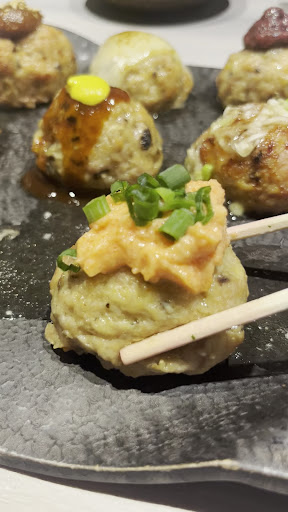 『お好み焼き』 追加で頼んだ創作つくね! 鰹節と紅生姜を乗せた見た目はまるでたこ焼き!笑 ソースとマヨネーズも合わさった味付けはまさにお好み焼きを彷彿とさせる味わいでした!