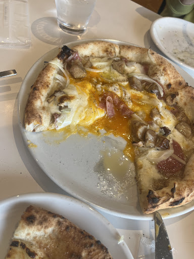 残念だったのはポルチーニ茸のピザ 写真ほどポルチーニは乗っていないし 中心の卵は生卵では?と思うほど 実際に白身はドゥルンとなって生だったし かなりビチャビチャでうーーん、、となった ポルチーニ茸の味は感じなかったし 玉ねぎはシャキシャキで辛い サラミはしょっぱい 何をどう味わったらいいのかわからないピザだった ※こちらのみ写真あり