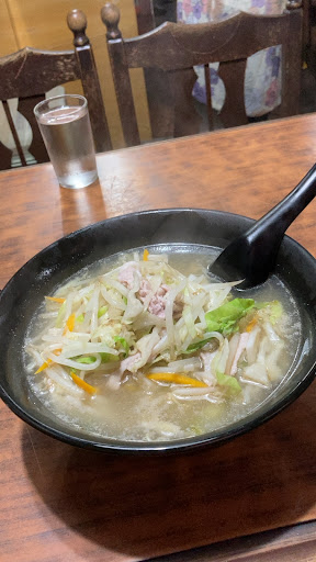 【肉スープ】 塩味で具多め。豚バラも厚くて食べがいがある。タンメンや五目そばの麺抜きをイメージしてもらえると良いと思う。チャーハンとセットで頼むならラーメン&チャーハンよりもこっちを頼んだ方が実は満足度が高い。