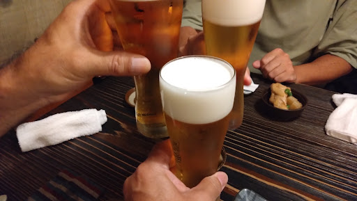 生意非常好,晚上10:30抵達已經沒有座位了,但服務人員很親切地告訴我們大概等15分鐘就會有位置,還建議我們先去附近走走,時間一到就順利入坐了。店內可以抽菸,只有提供日文菜單,一本是印刷另一本是手寫的,手寫那本菜色非常豐富,用翻譯軟體很難全部看懂。即使如此,服務人員還是非常熱情地一一介紹,盡量讓我們知道自己點了什麼。一陣亂點之後,結果每道菜都出乎意料地好吃,海鮮非常新鮮,生蠔和蛤蜊又大又飽滿。比較可惜的是調酒濃度偏低,如果可以再重一點會更好,但整體感受非常滿意,完全可以再訪。