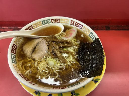 仕事で近くに来たので口コミ見てから訪問 人柄のいいお父さんとお母さんが出迎えてくれます。 冊子のメニュ表は無く、店頭に貼られたメニュー表でオーダーします。セットが入り口の看板に書いてあったので、その中から生姜焼き定食半ラーメン付をオーダー。お腹空いていたのでラーメン大盛りで100円増の900円です。先に生姜焼きを炒めてから麺を茹でてくれているらしく、ラーメンは私好みの硬めで出て来ました。ラーメンは至って普通の醤油ラーメンですが細めのちぢれ麺が醤油のスープにマッチしてます。ただ大盛りにすると画像ではわかりづらいですが、結構な量が入ってます。生姜焼きはほんとご飯のお供に最高でした。副菜もたくさんついて、ヤクルトもついて半ラーメンもついて800円は感動ものです。大盛りにした結果お腹パンパンです。しなくてもよかったかも 外観、内装は年季が入ってますが、昭和感ありいい雰囲気です。店内は狭く カウンター5席 2人掛けテーブル2...