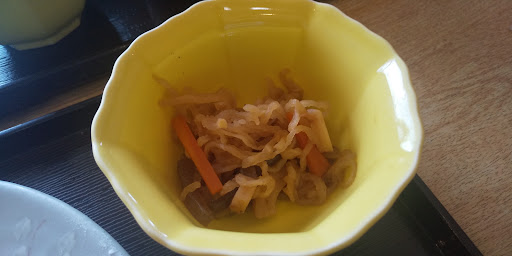Read more他の方のコメントにも散見されるように、独特な雰囲気あったなあ。 入店時、奥の座敷で町内会の集まりのような宴会やっていたり、今だに坊主頭を強制している学校の寮でも近くにあるのか、テーブル席エリアの半分位をそんな学生達が占めていたりはしてたけど、かといって忙しそうな店内でもないのに、いらっしゃいませの言葉もなく、誰もこちらを見ることもない。 店の人いないのかなあと呆然としていたら、こちらに背を向けカウンターに座ってテレビを見てた方がどうも店主、あるいは店の関係者のようでした。 しょうがないので、勝手に空いてる席に座っていたら、その方がオーダー取りに来たけど、卓上にメニューはなく、学生軍団の頭上の壁に貼ってあるだけ。 自分の席からは見えにくく、かと言って席を立って学生達の輪に入るようにメニューだけ見にも行きにくく、もう帰ろうかなと思っていたら、しばらくしてその店主らしき人が、宴会やってる座敷のほうから、定食類?だけ書かれたメニュー持って来てくれました。 ま、他にも色々とエピソードはあるんですが、そんな雰囲気のお店です。 店の人達の態度が悪いとかコメント書かれていましたが、まあ、どーなんですかね?人によってはそう感じてしまうこともあろうかと思いますが、良く言えばフランク、向こうが気を使わないのでこっちも気取らなくて済むとも言えるので、自分はまあギリ大丈夫でしたって感じす。 ああ、肝心のお味は普通ですよ。別に不味いとか臭いとかは無いですが、格段ンまいと言うこともなく、普通。 たぶん酒飲み相手に商売しているからか味はしょっぺ〜〜! 鯵刺は意外や美味しかった。 コスパはいいので、一般市民を苦しめるこの国の中では助かるなあ。 総じて、高評価見て期待感高めてわざわざ行くほどでは...