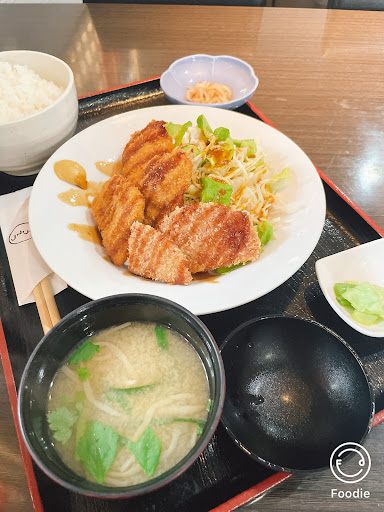 平日13頃訪店。前客、後客共に無しで貸切り状態、駐車場5台空き有り。刺身定食を狙っていきましたが、本日の定食が私の好きなヒレカツ&ハムカツ定食950円だったので、そちらを選択。 ヒレカツ、ハムカツを揚げている音が心地良かったですね。肉質、衣の加減、揚げ具合が丁度良く、とても美味しかったです。ご飯は無料の多めでお願いしましたが、本当に多かったです。味噌汁、漬物、切り干し大根の五目煮は普通ですかね。総じて、コスパ良いと思いました、感謝です。