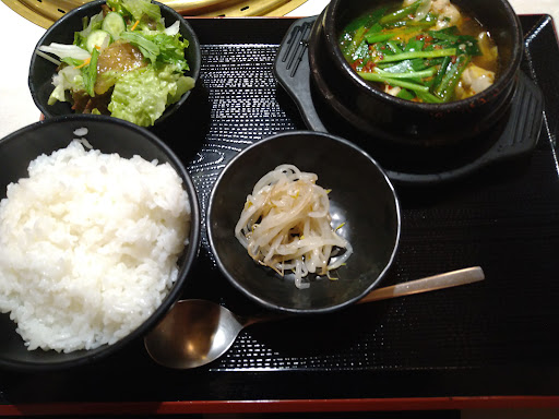 平日13:30頃訪店。駐車場空き5台ほど。席は半分程埋まってました。私は、ランチセットで1番安い牛タンシチュー定食781円を頼みましたが、コスパ良かったですね。LINEの初回お友達登録特典でキムチもいただきました。 先ず、牛タンシチューは大きな肉の塊が3個入っていて味も良い。ご飯は中盛りとの事ですが、量はかなり少なかったです。ただ、ご飯もとても美味しかったので+50円で大盛にするべきでした。 ワカメスープ、キムチ、もやしは普通でしたが、サラダはポテトサラダが載っていてgoodでした。 総じてお得で美味しかったのですが、1番安いセットでは量が足りなかったですね。次は焼肉とのセットを頼むとして再訪決定です。ご馳走様でした。