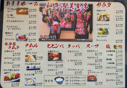 Read moreモツ鍋定食とハンバーグ定食が美味しいです(^^) モツ鍋定食は紙のメニューには載ってませんが、タッチパネルの方にはあります。ハンバーグ定食は人気のため早く行かないと売り切れます。おすすめはハンバーグ定食のスープを+480円でモツ鍋に変更です! 今日はモツ鍋定食を注文。 モツ鍋が入っている鉄鍋は少し小さめですが、5切れ…と思ったら最後の1個は白菜の固まりでした^^;それでもこの価格であれば満足の量とクオリティです。 お肉全般、一頭買いのため、希少部位が充実していますし、リーズナブル!何より美味しいです! ごはんは注文時、大盛り無料もうれしい! 本日13時入店、雨にも関わらず、3組待ち、30分ほど待ちました。入店後、記名して順に案内するパターンです。カウンターとテーブル選ぶ欄がありますが、一人でもテーブル案内です。 やはり、焼肉なので回転は遅いので、早...